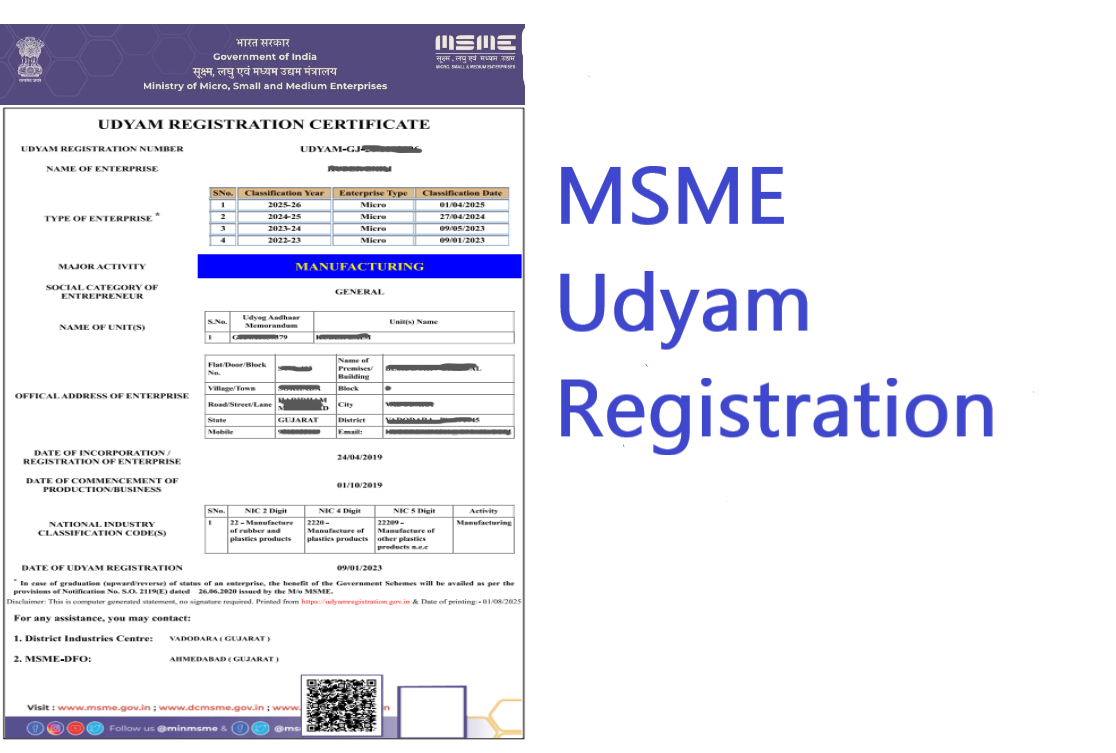 The Ministry of MSME issues an e-certificate known as the Udyam Registration Certificate to MSMEs in India. The Udyam registration certificate is known as the MSME registration certificate. The entrepreneurs receive the MSME registration certificate upon completion of the MSME registration process. The certificate will contain a QR Code, from which the enterprise details can be accessed.