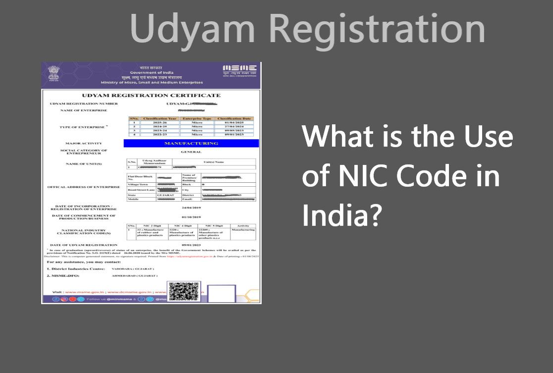The National Industrial Classification (NIC) code is a unique 5-digit code assigned by the government to classify and identify business activities in India. It shows the type of work a business does, such as manufacturing, services, or trading. This code is required for registrations like Udyam, GST and company incorporation and helps the government properly categorise businesses for compliance, schemes, and records.